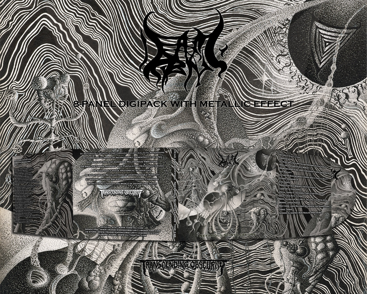 Info : Dead And Dripping is back with another album of mind-warping, reality-deconstructing music. One-man crew Evan Daniele, who was already playing everything on the albums so far, has gone ahead and even created the artwork for this album that manages to replicate the intricate nature of the music along with some kind of hallucinogenic quality that it induces. The music is often slower, deliberate, as if to create a hypnotic effect aided by use of repetition, and with that the songs can go on for as long as nine minutes without seeming cumbersome as is almost always the case with the brutal death metal subgenre where lengthy songs go. Dead And Dripping is doing something novel in this space which begs to be heard with all its quirks including the Demilich-esque croaks to go with music sounding just as surreal and twisted. It's an album that is painstakingly composed with thought and effort put into every single aspect of it and with all of it done in a refreshingly organic manner. "Nefarious Scintillations" is a tour-de-force for the style and a testament to the dedication and prowess of one-man bands.